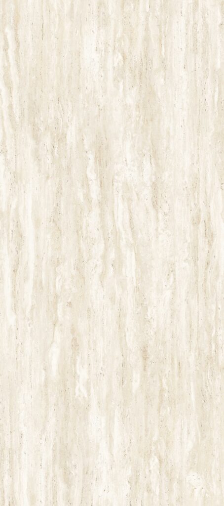 Série Travertino využívá pokročilou výrobní technologii, která dodává povrchu jemnou reliéfní texturu. Ta zvýrazňuje přirozenou kresbu travertinu a dodává materiálu autentický vzhled.